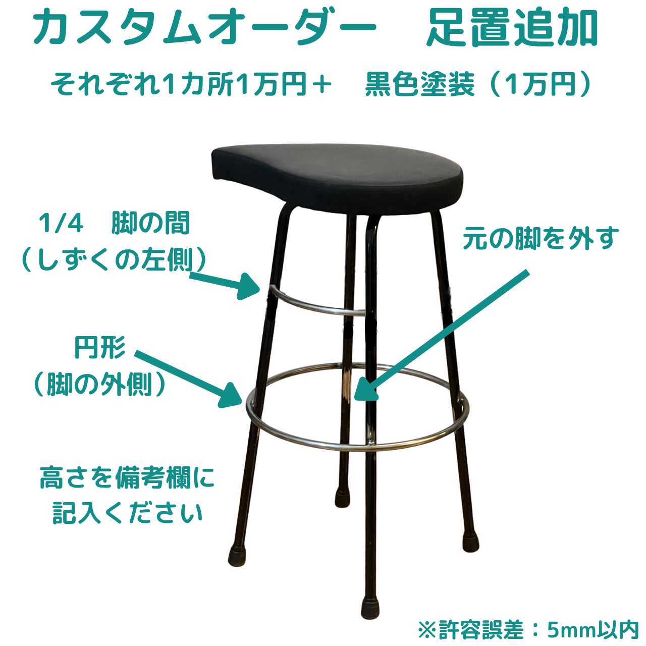 カスタムオーダーで足置高さの変更、追加を承ります。